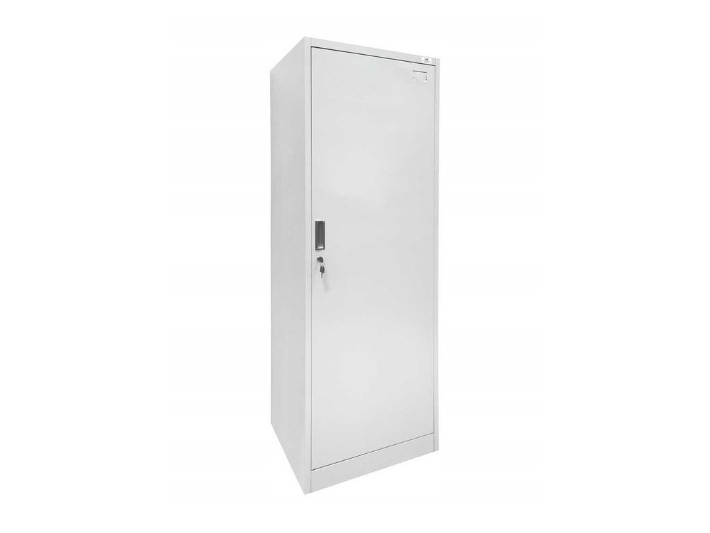 A szekrény tömör, 0,6 mm vastag acéllemezből készült, ami biztosítja a stabilitását és tartósságát. A szürke porbevonat véd a korrózió ellen és meghosszabbítja a termék élettartamát.