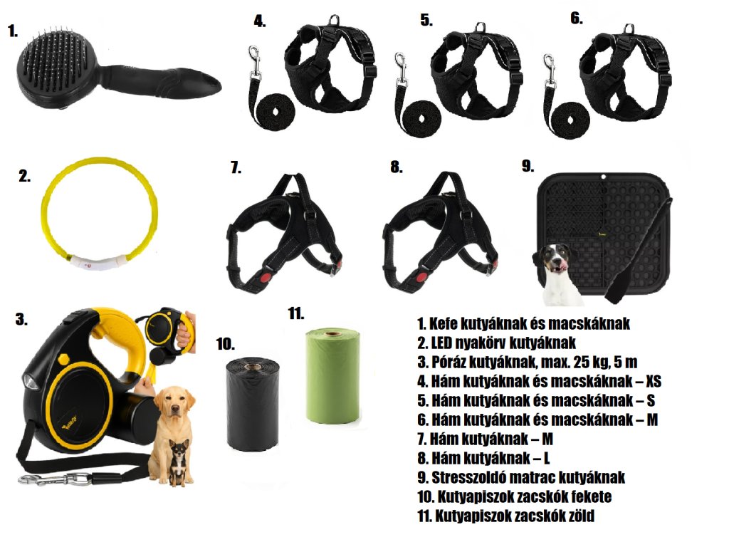 Az ágyak méretei: 65 x 55 cm, 75 x 65 cm, 80 x 65 cm, 100 x 75 cm, 115 x 95 cm, 130 x 105 cm. A steppelt ágy vastagsága kb. 10–12 cm, megfelelő kényelmet biztosít, és két kis párna is tartozik hozzá, amely a kutya játékára is szolgálhat.