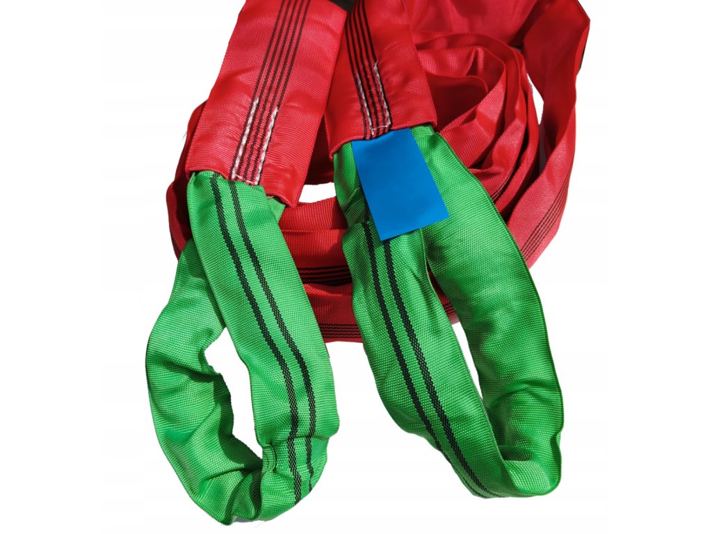 Vontatókötél, anyaga: poliészter, szélessége: kb. 10cm, hossza: 4m, 6m, 8m, maximális terhelés: 14t, zöld fűzőlyukak a kötél végén.