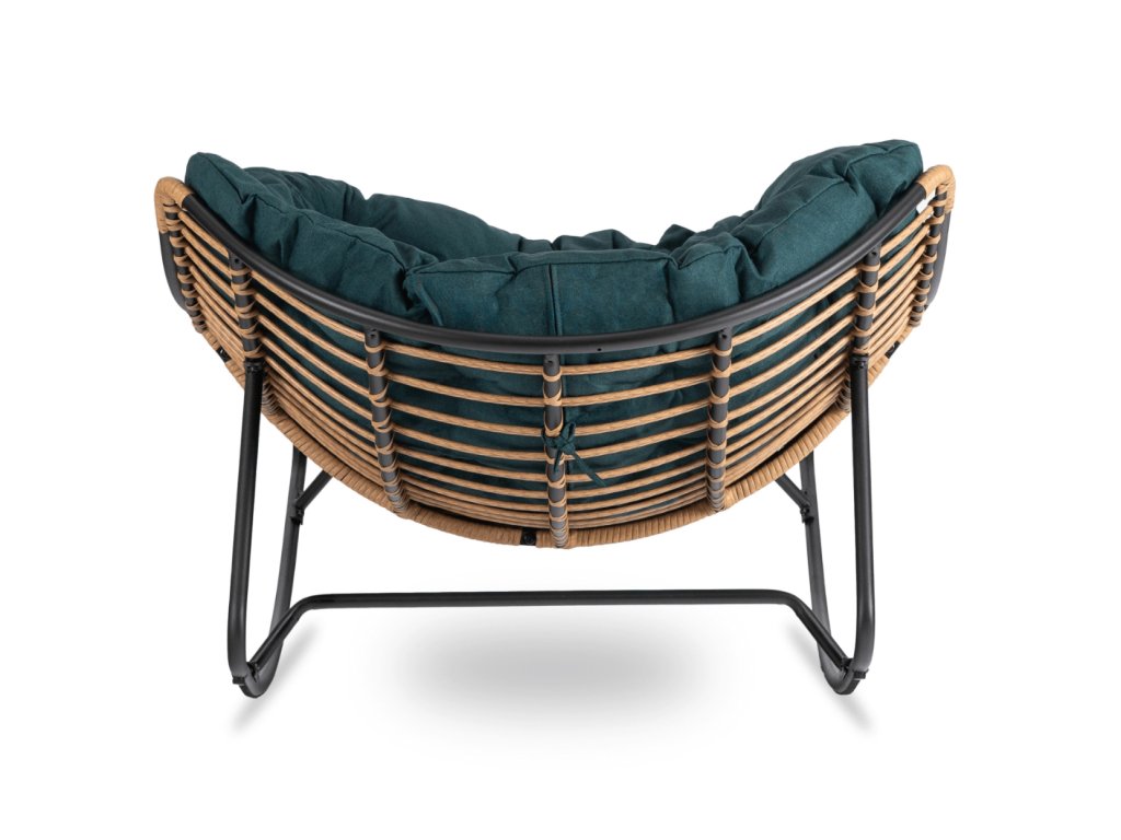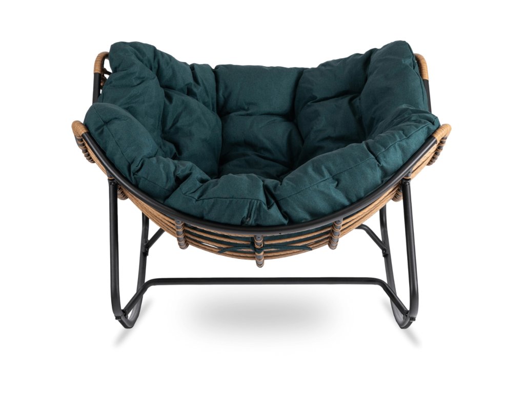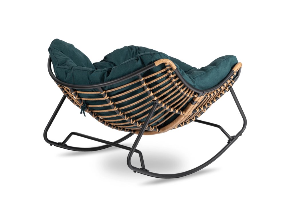 A fotel alapját masszív fém szerkezet adja, amely stabilitást biztosít hosszú távú használat mellett is. A hintalécek sima mozgást tesznek lehetővé nyikorgás nélkül, és a fekete porfestett keret révén a fotel kültéri használatra is alkalmas.